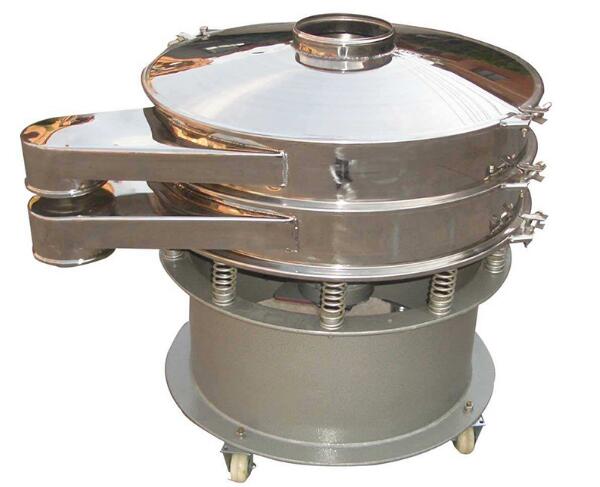 全脂奶粉篩利用YZUL立式振動電機作為激振源,通過振動電機上下兩端的偏心重錘將旋轉運動轉變為水平、垂直、傾斜的三次元運動,並傳遞到丝瓜视频污版的篩麵上;物料通過入料口進入設備內,根據不同物料篩分要求,物料經過1-5層采用不同目數的金屬編織篩網的篩分層,
