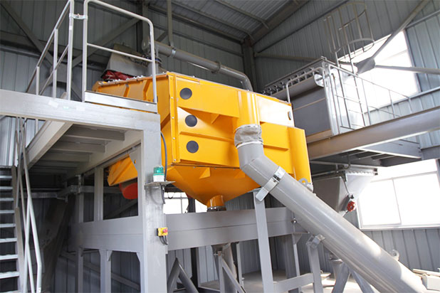 概率篩和普通振動篩基本結構是一樣的,也由篩箱、激振器和支承(吊掛)裝置三部分組成。但結構又具有層數多、傾角大、篩孔大和篩麵短四大特點。概率篩的篩箱由篩框和3~5個篩麵組成,篩框是用鋼板和型鋼焊接或鉚接的多邊形箱體,篩麵裝設在篩框上。每個篩框上可安置數個傾斜篩麵,目前,多數概率篩裝有三層或五層篩麵。各層篩麵的坡度,自上而下遞增。由於考慮到物料在篩麵一有較大的運行速度,所以采用大的篩麵傾角。上層篩麵傾角為15°~35°,並以上層傾角為準,以下各層篩麵按4°~6°遞增.的篩孔為大,其它篩孔尺寸自上而下逐層遞減.一般上層篩在販篩孔要比分離粒度大10~15倍;下一層篩麵的篩孔至少也應是分離粒度的1.5~2倍;中間各層篩的篩孔,可在上和下兩種篩孔之間酌情選取。因為隻有在采取大傾角篩麵的條件下,才有可能采用遠大於分離粒度的大篩孔篩麵,故篩麵傾角和篩孔大小應統一考慮。